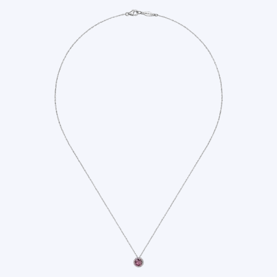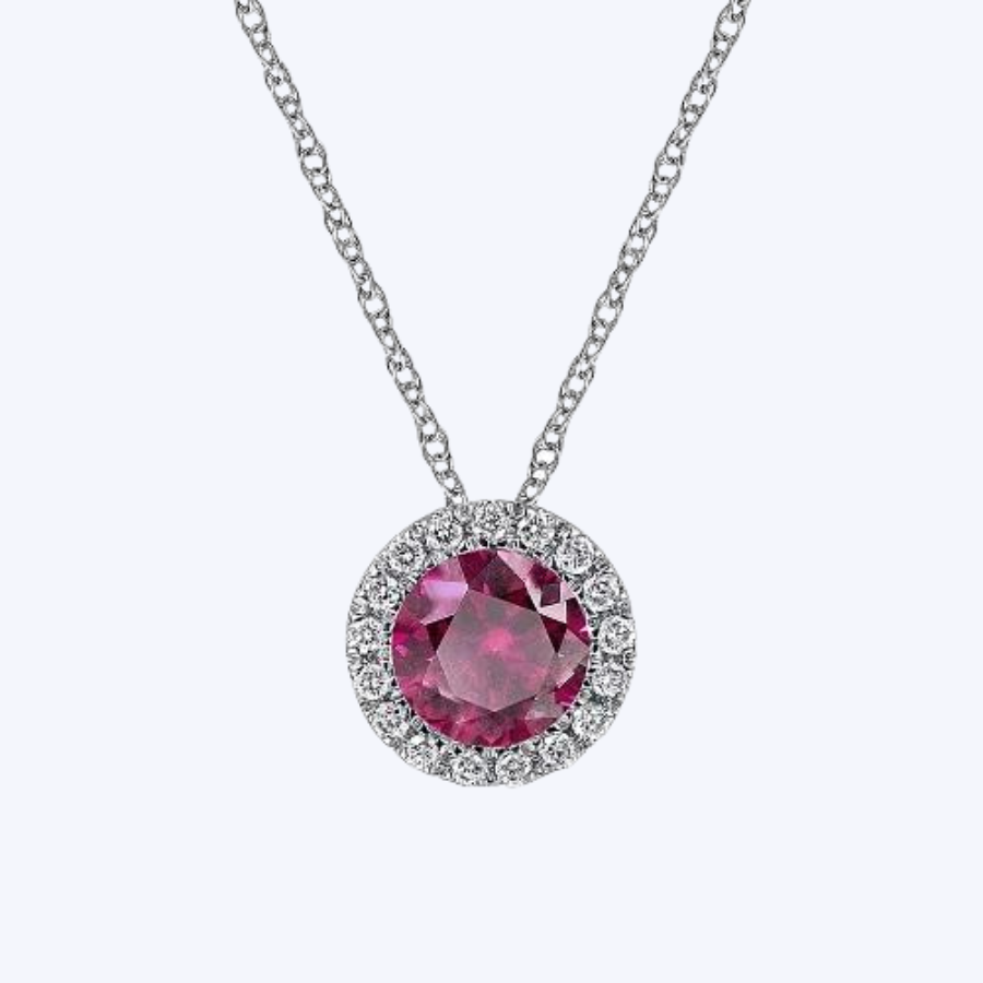 Ruby and Diamond Halo Pendant Necklace