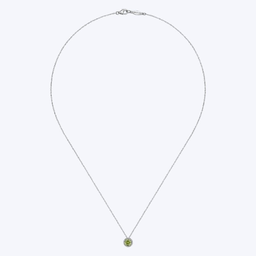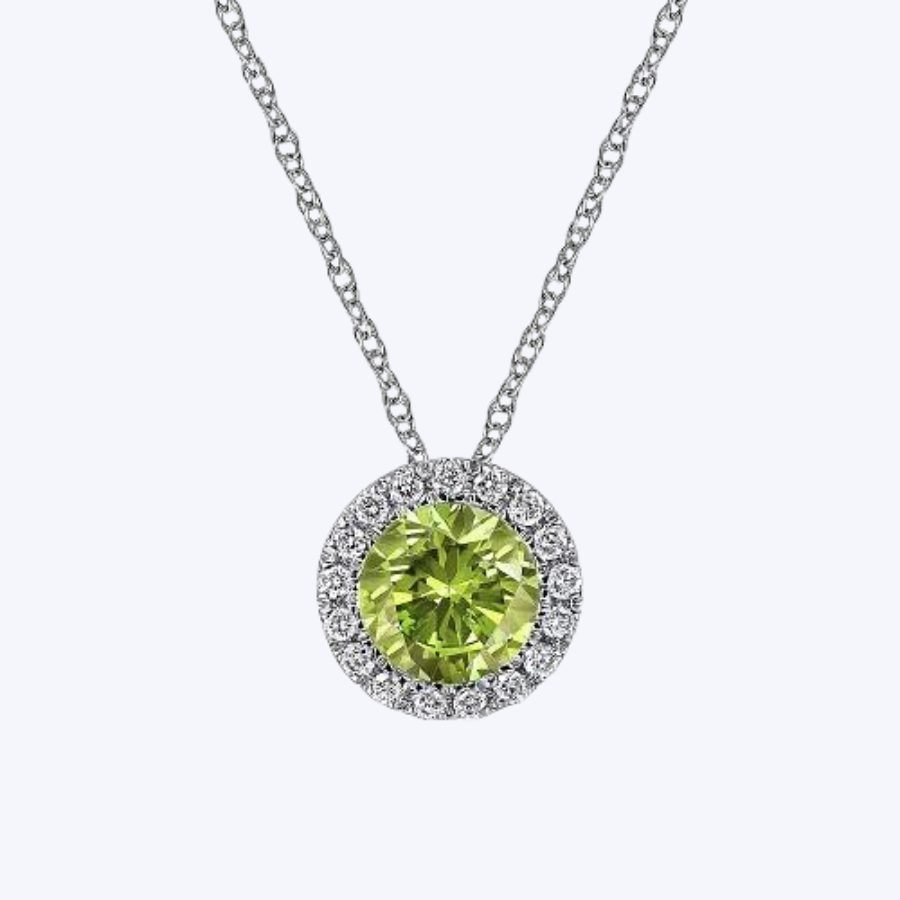 Gaby White Gold Peridot and Diamond Halo Pendant Necklace