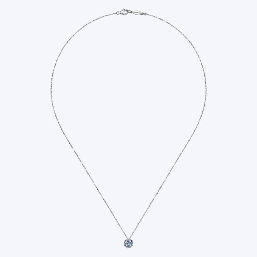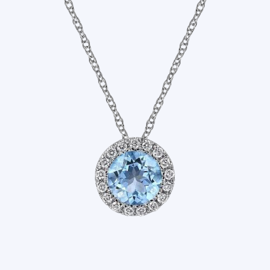 Swiss Blue Topaz and Diamond Halo Pendant Necklace