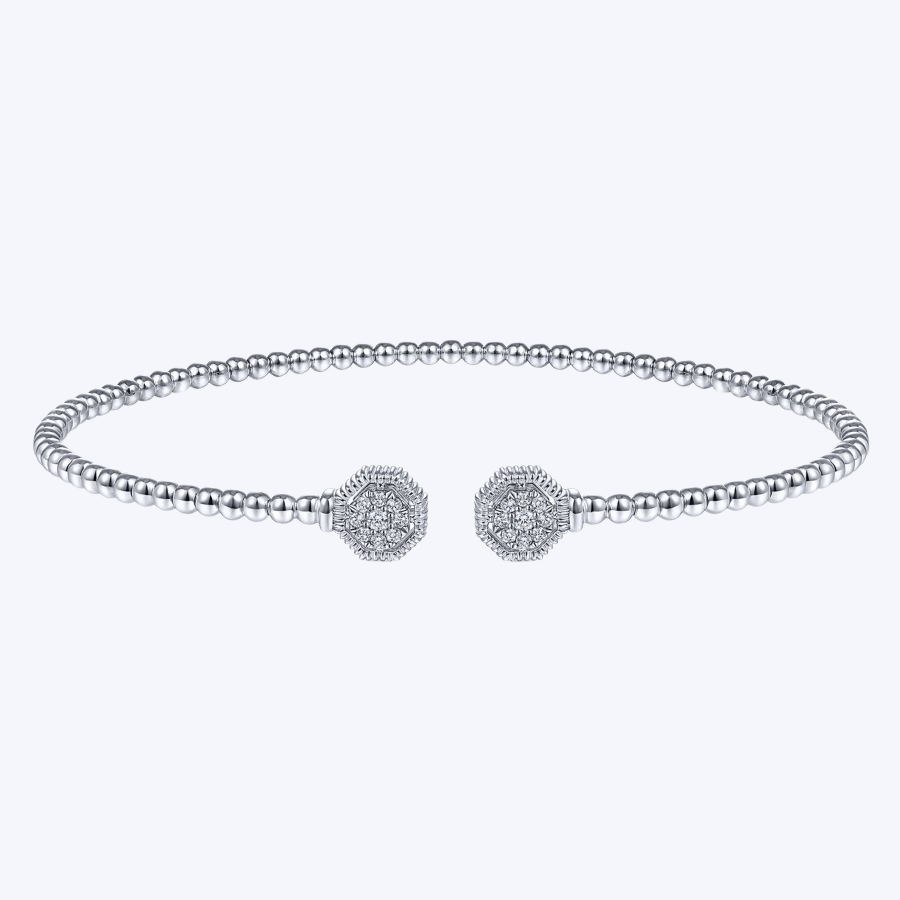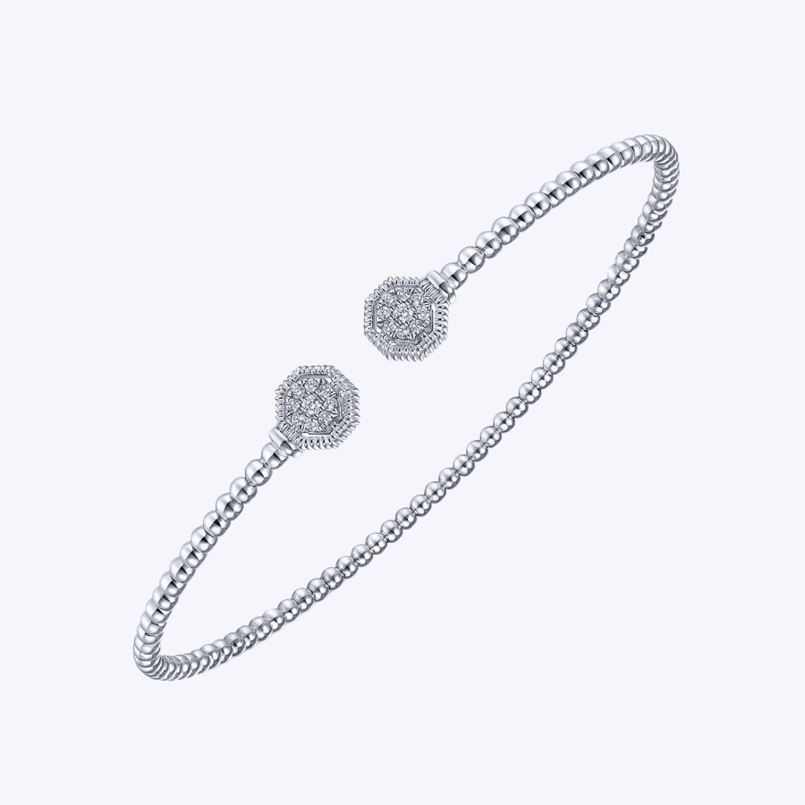 Bujukan Split Cuff Bracelet with Diamond Pave Hexagon Caps