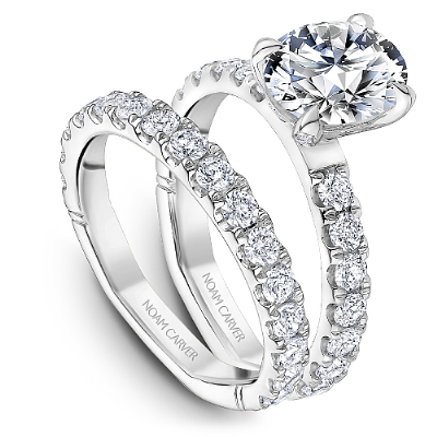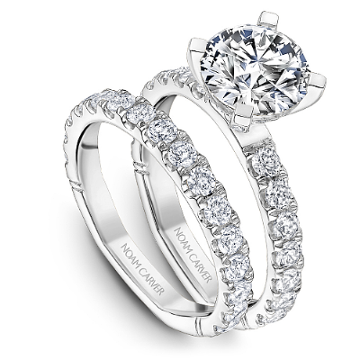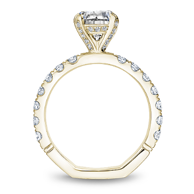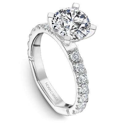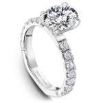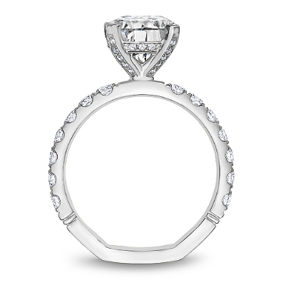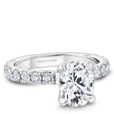 This Noam Carver engagement ring features a Hidden Halo and 0.05 carat prong-set diamonds going 75% around the band. This style can be customized to fit a variety of diamond shapes and sizes starting at 0.50 carats, available by special order.