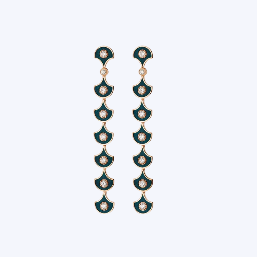 Fish for Love Collection Petrol Blue Enamel Set with Diamond Drop Earrings