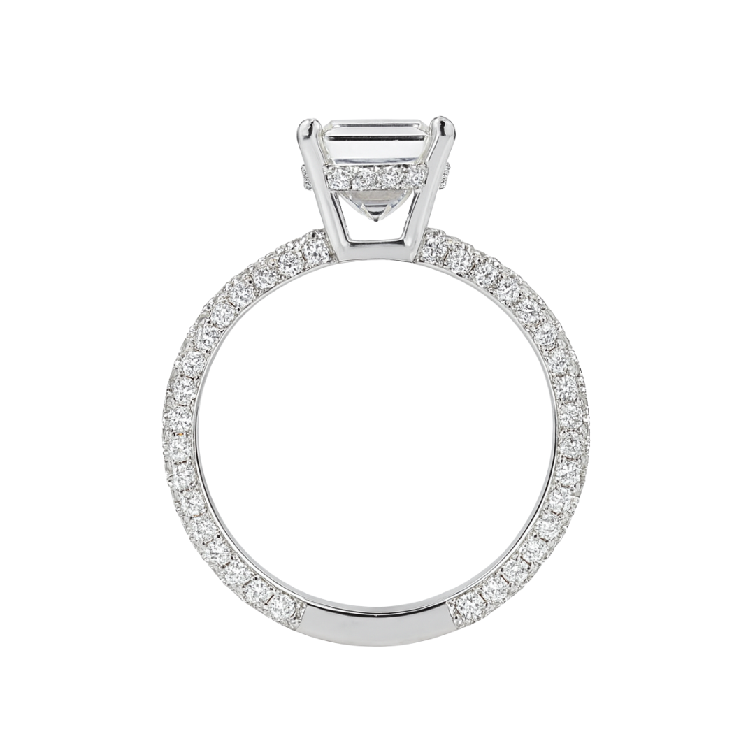 3.01ctw Asscher with Hidden Halo and Diamond Pave Engagement Ring
