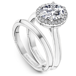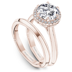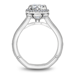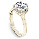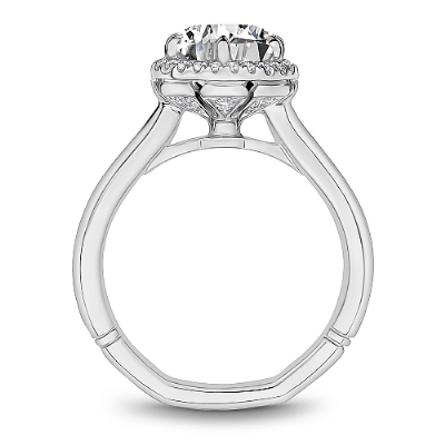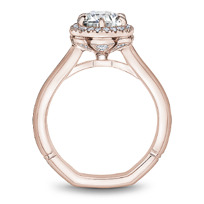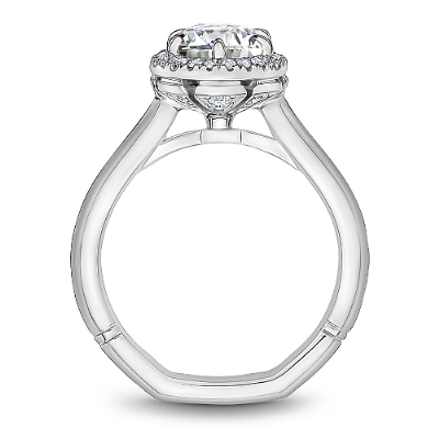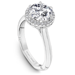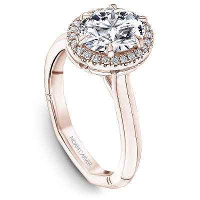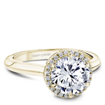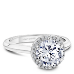 This Noam Carver engagement ring features 6 claw prongs prongs and a diamond accented halo. This style can be customized to fit a variety of diamond shapes and sizes starting at 0.50 carats, available by special order.