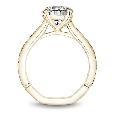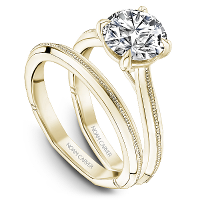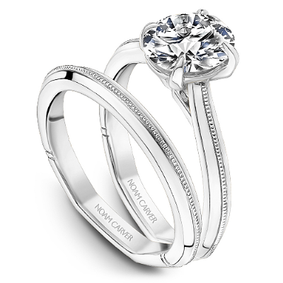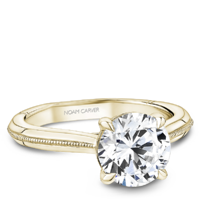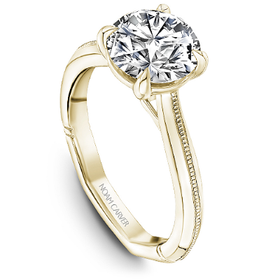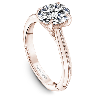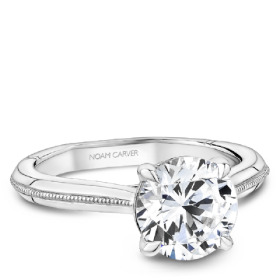 This Noam Carver engagement ring features a milgrain design around the shank. This style can be customized to fit a variety of diamond shapes and sizes starting at 0.50 carats, available by special order.