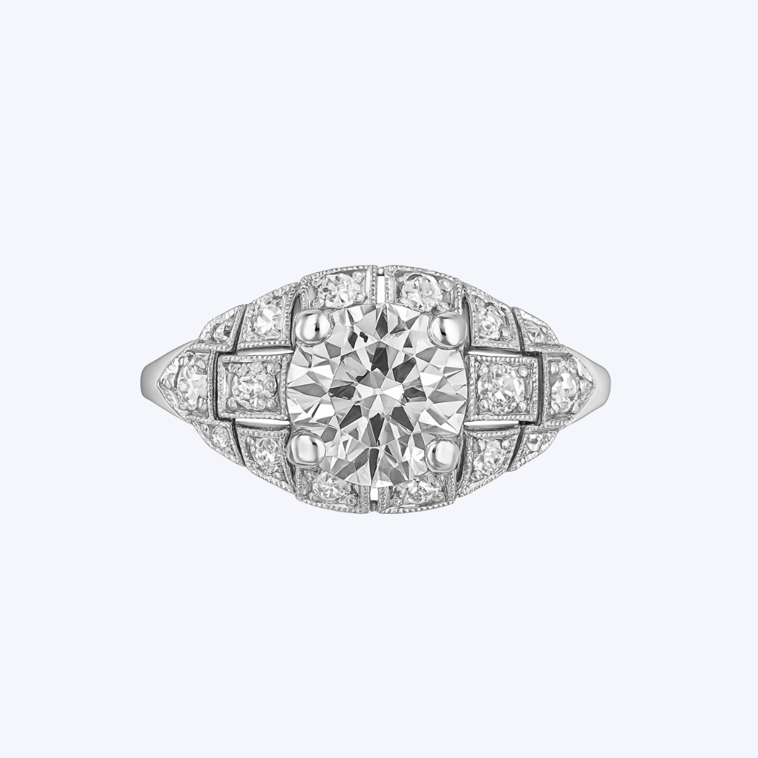 Platinum Art Deco Round Diamond Ring