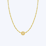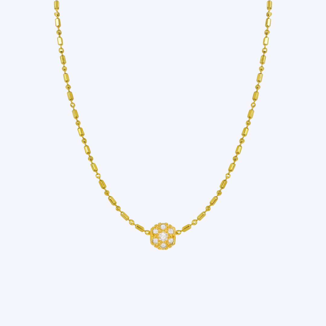 22K Yellow Gold Bead Necklace w/ Diamond Accent Pave Ball Pendant