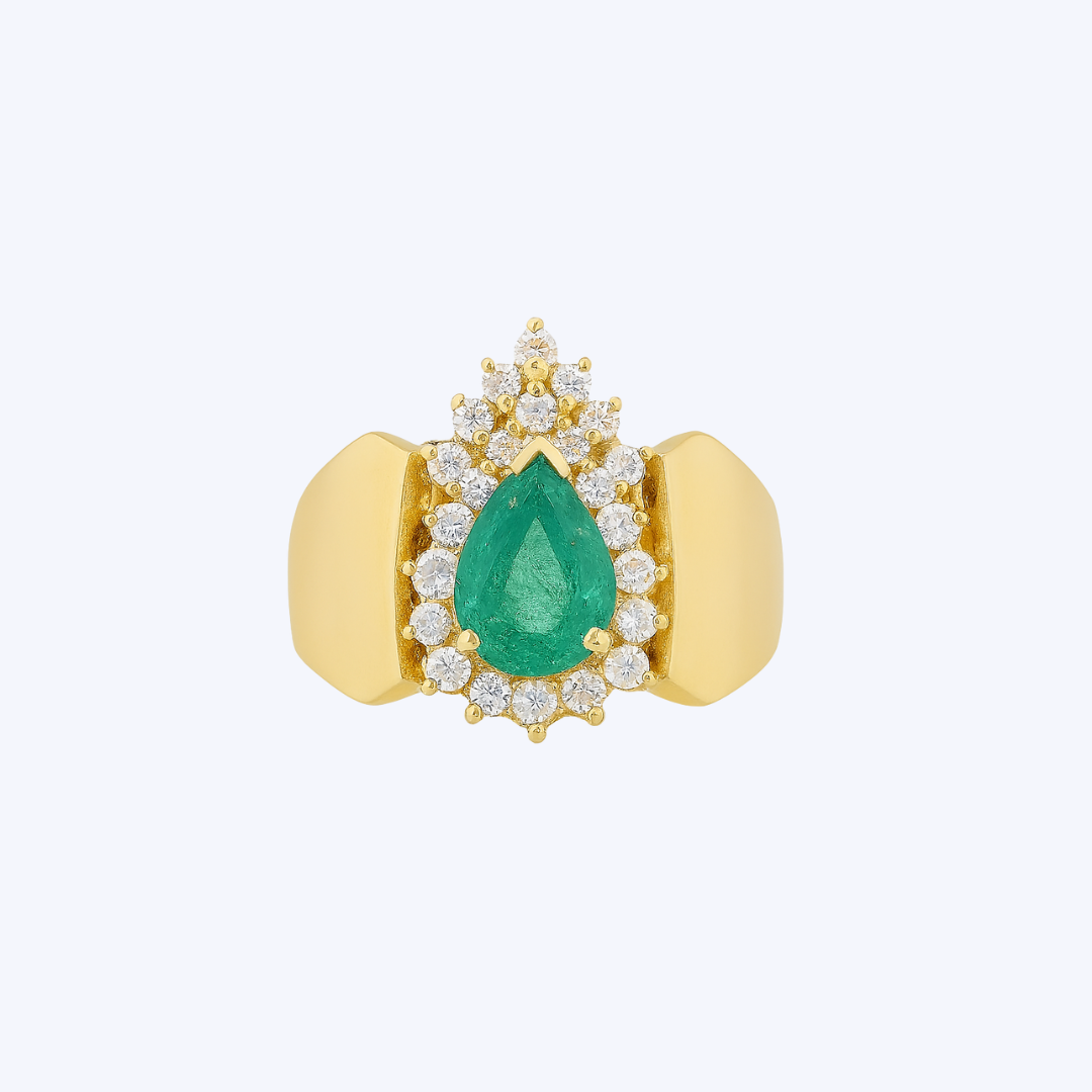 Bold Pear-Shaped Emerald and Diamond Halo Ring
