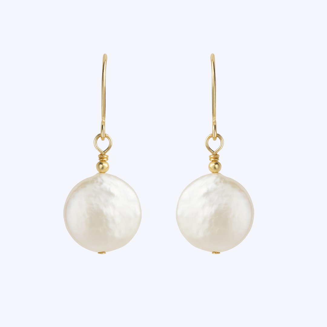Golden Drop Coin Pearl Earrings