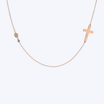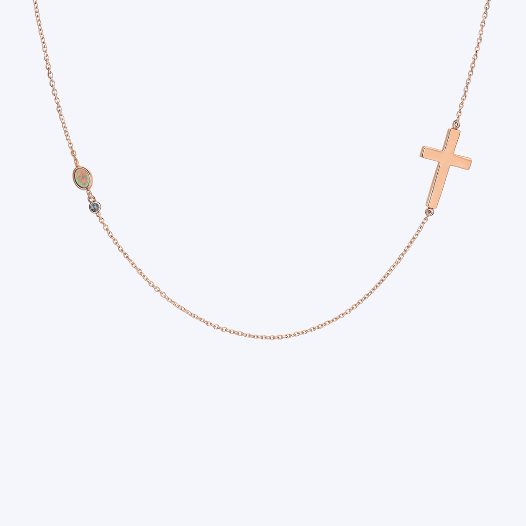 Rose Gold Cross Necklace with Opal & Blue Sapphire Accent