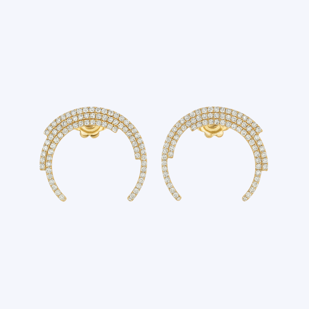 Diamond Pave Crescent Stud Earrings