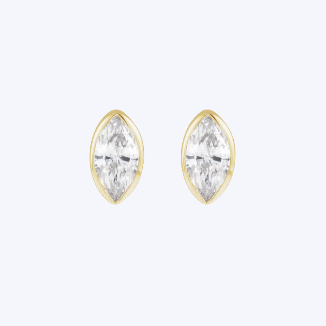 Mini Bezel Marquise Diamond Press Fit Back Stud Earring