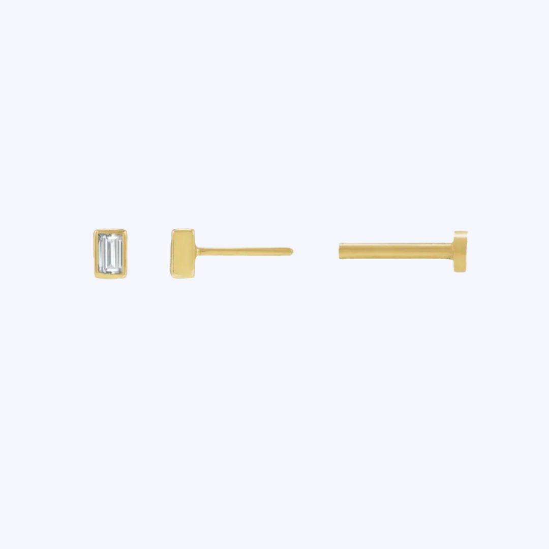 Bezel Lab-Grown Baguettes Press Fit Back Stud Earring