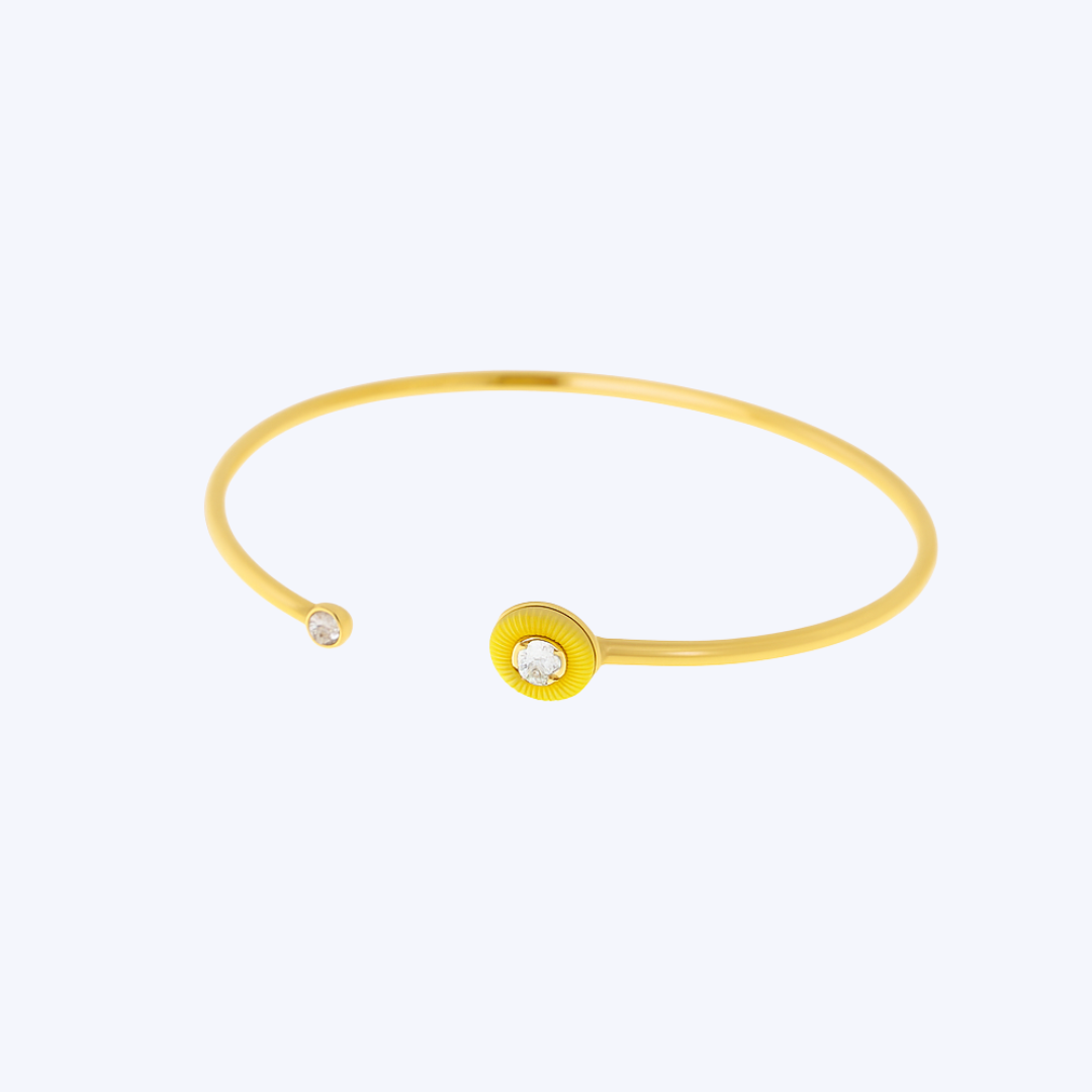Mina Collection Diamond and Yellow Enamel Open Cuff Bracelet