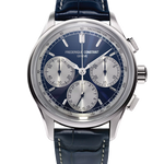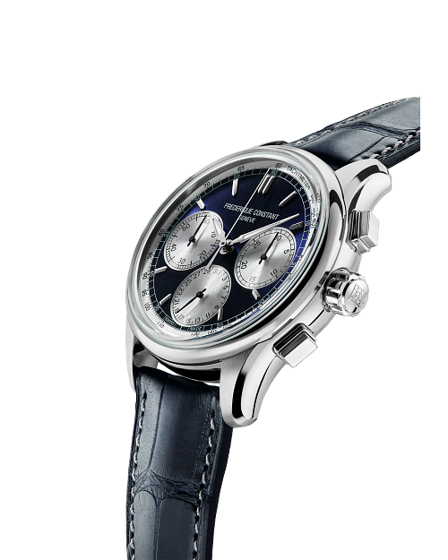 Our Classics Flyback Chronograph Manufacture watches are equipped with the FC-760 Manufacture caliber which means that this caliber is in-house designed, produced, and assembled. Inspired by 1930’s flyback chronographs and driven by a desire to go beyond a regular chronograph construction, its chronograph can be stopped, reset to zero, and restarted with one push of a button. This function is essential for timing an elapsed interval of events during races.