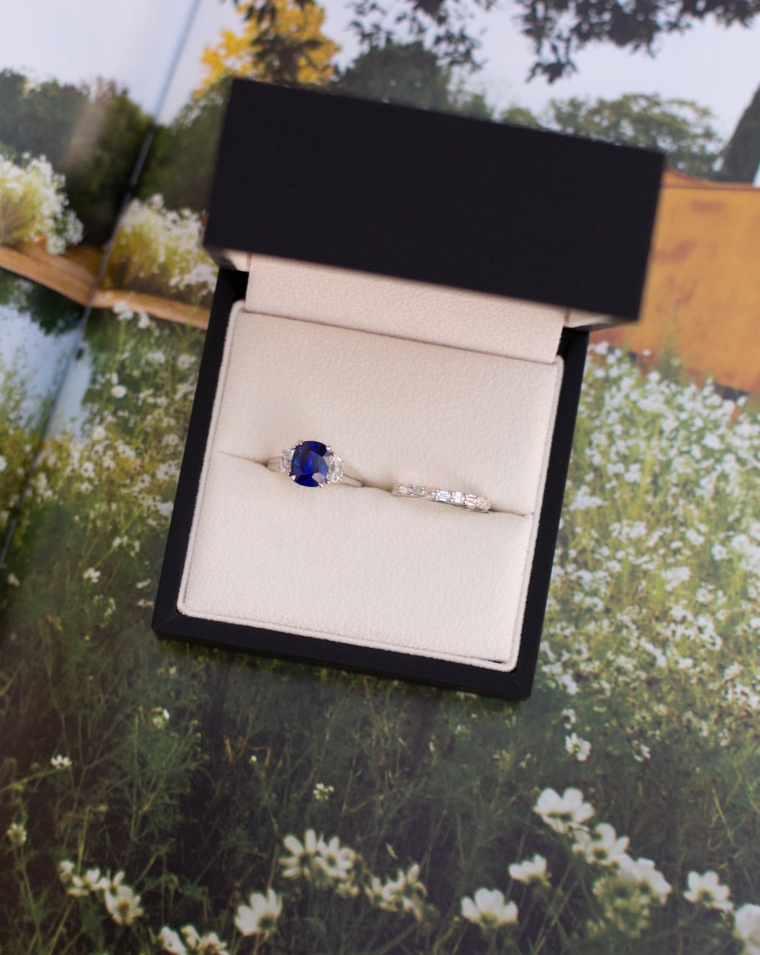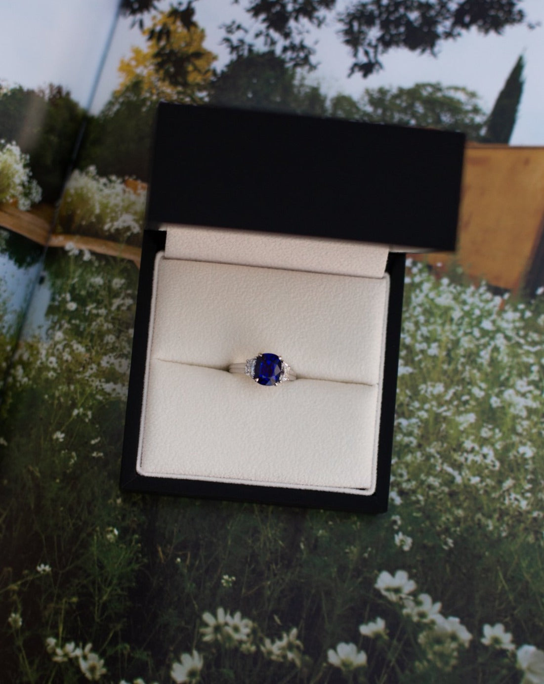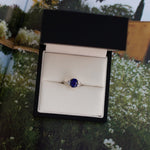 Cushion Cut Sapphire & Half Moon Diamond Ring