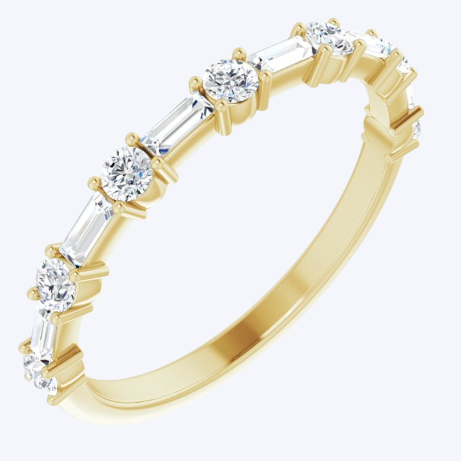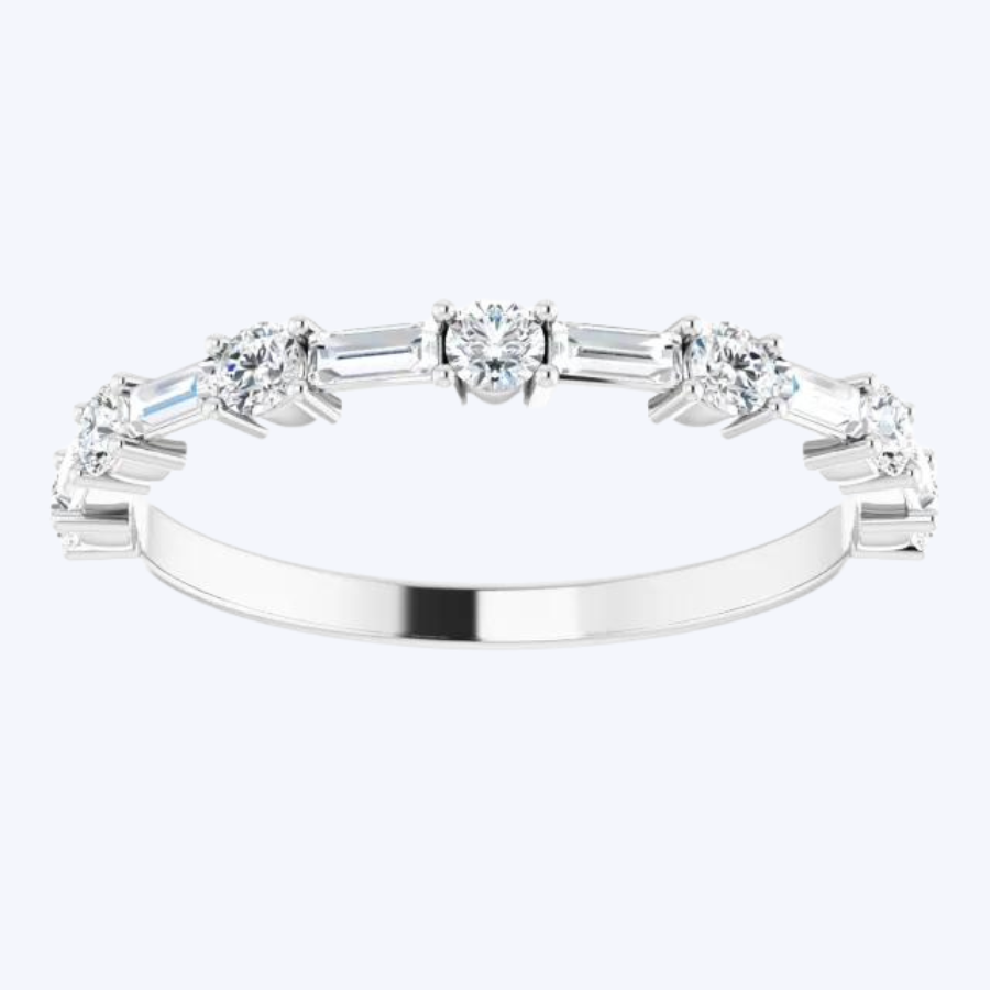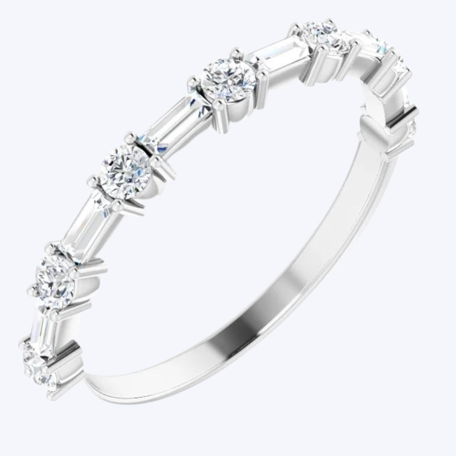 Alternating Baguette & Round Diamond Semi-Eternity Band