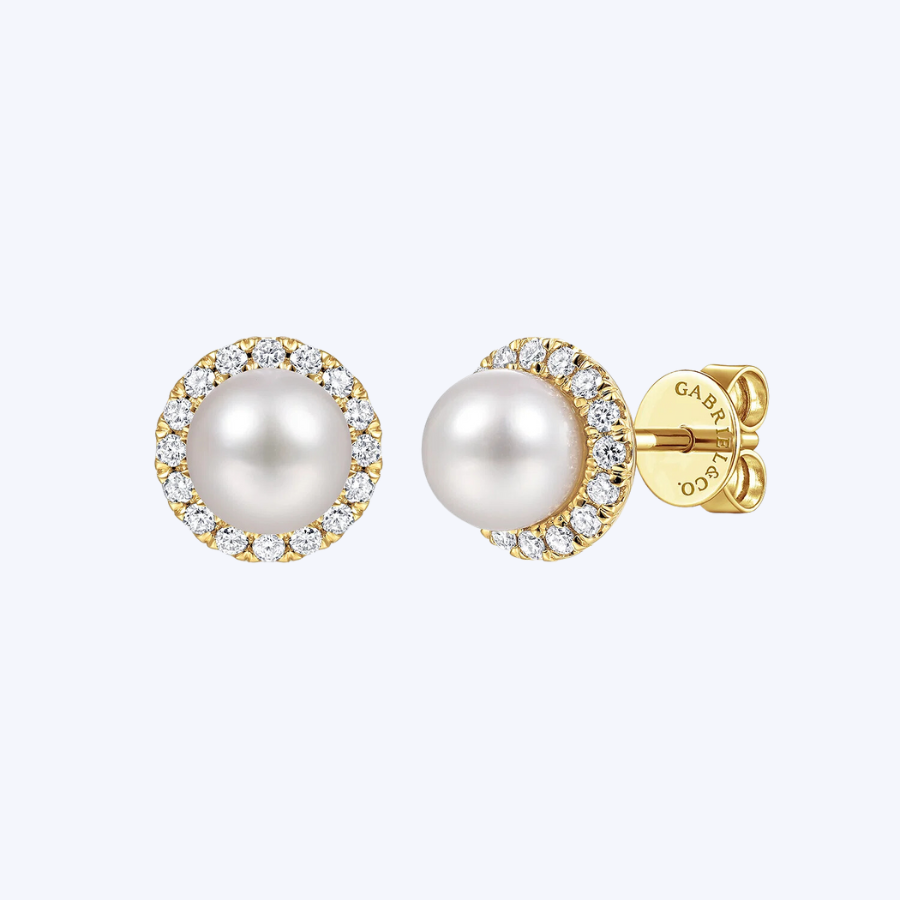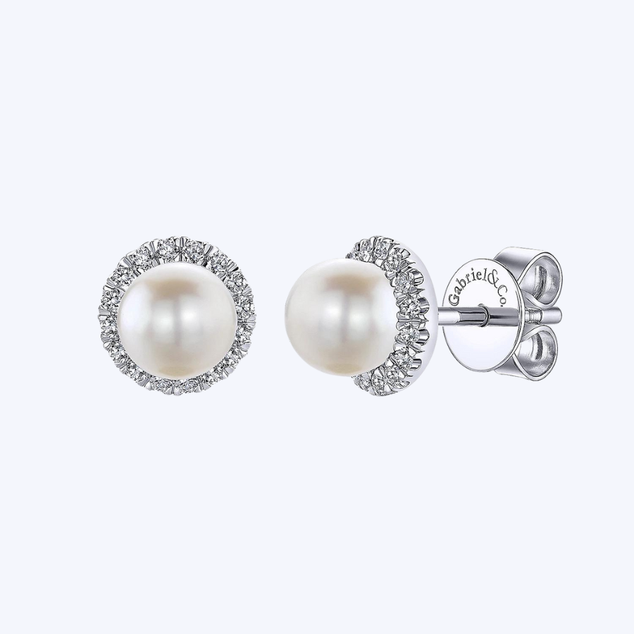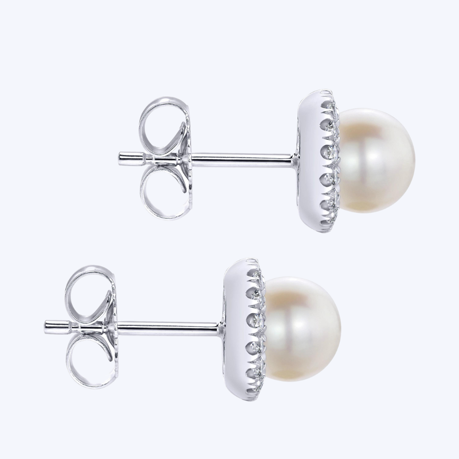 Pearl with Diamond Halo Studs