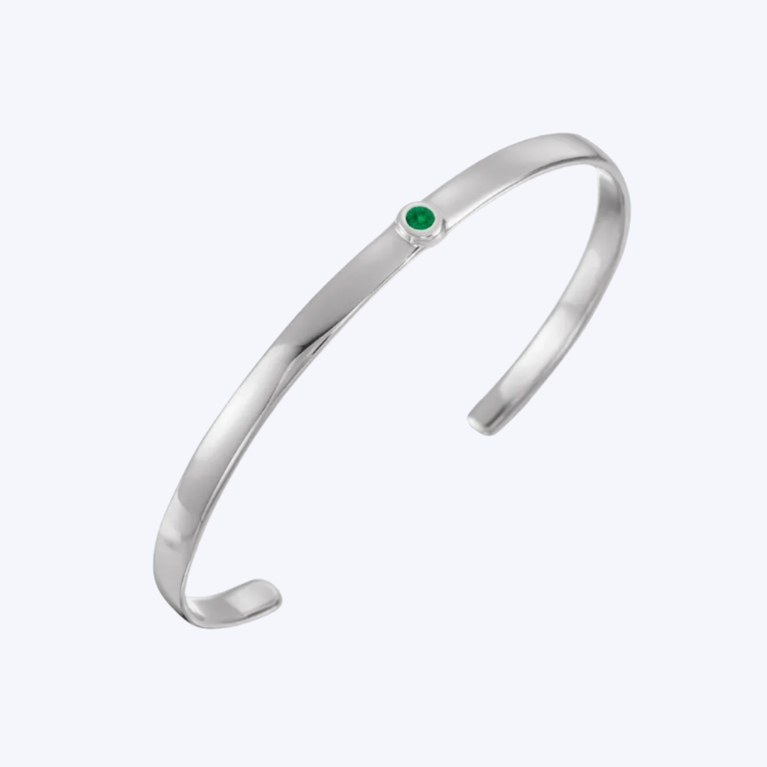 This cuff is custom-made to order in your choice of gold color and birthstone. Please allow 2–3 weeks for production before shipping.