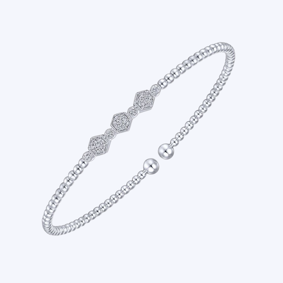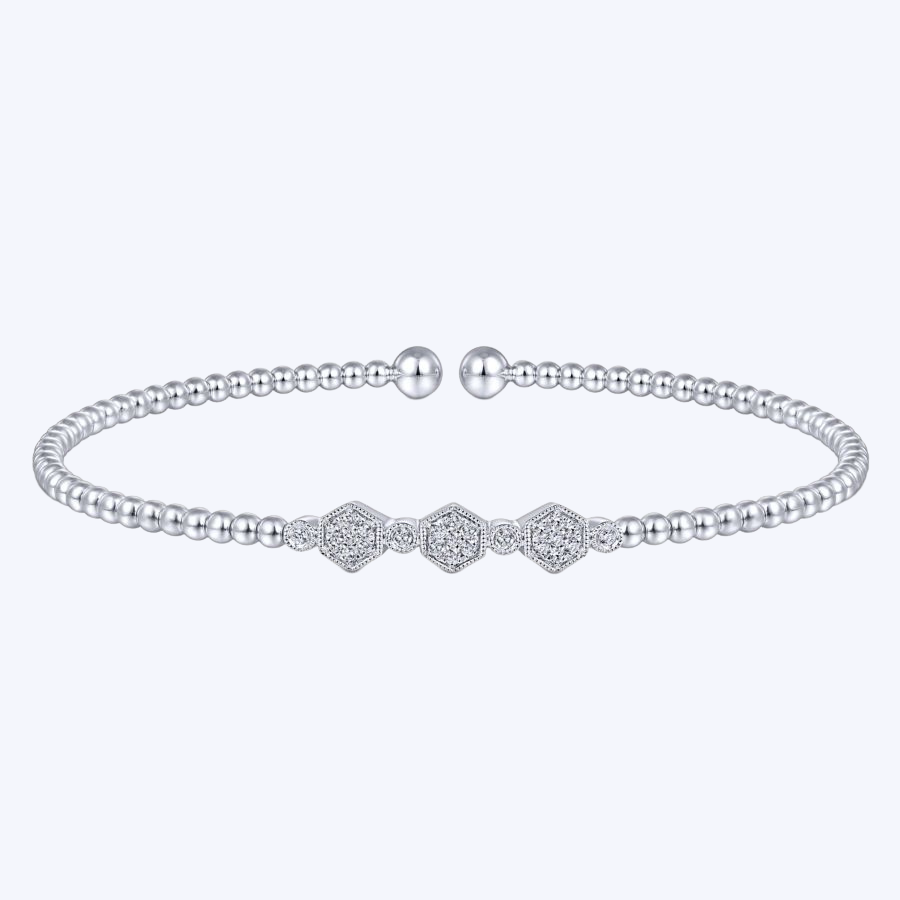 Bujukan Bead Cuff Bracelet with Cluster Diamond Hexagon Stations