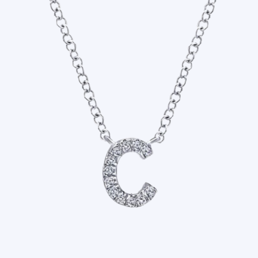 "C" Diamond Initial Pendant Necklace