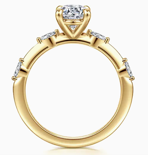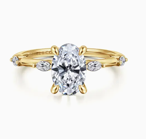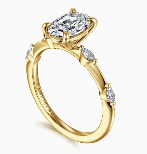 This Gabriel & Co. engagement ring setting features an oval center stone with diamond accents.