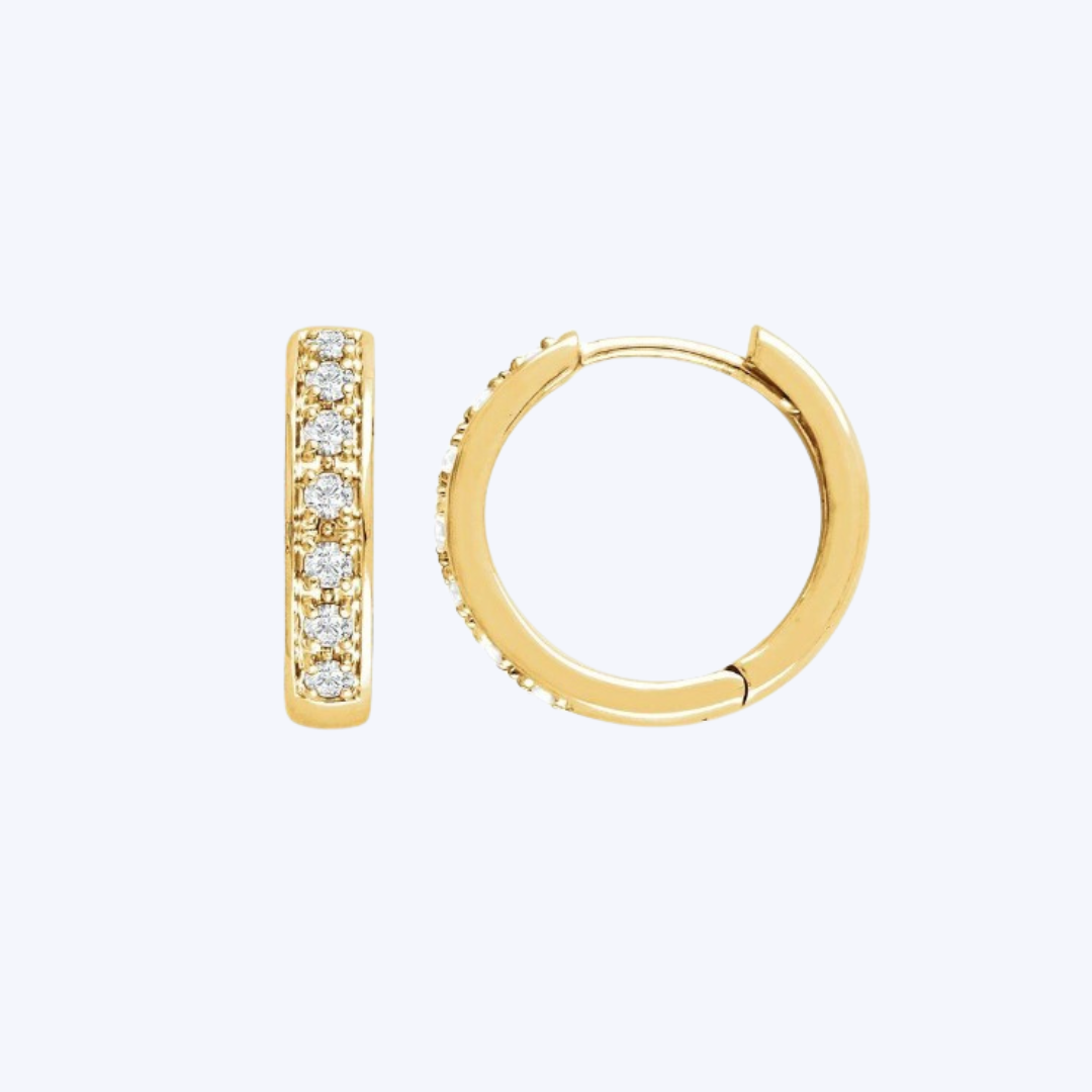 Huggie and hoop earrings feature circular or semi-circular designs that curve around the ear, with huggies sitting close to the earlobe and hoops extending outward in larger diameters. Construction utilizes hinged mechanisms or continuous circular forms with secure closure systems including click-backs or lever mechanisms. These designs often incorporate gemstone settings along the exterior surface using channel, pavé, or individual stone mounting techniques. Highland Diamond's huggie and hoop collection combines precision engineering with elegant proportions for comfortable, secure wear and exceptional brilliance.