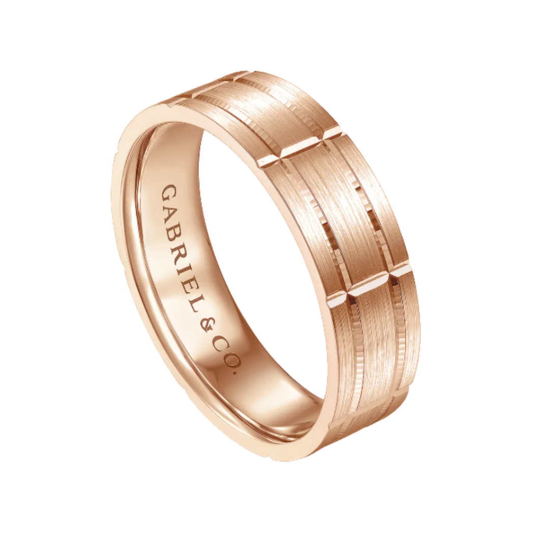 Henry 6mm Checkerboard Pattern Men's Wedding Band in Satin Finish