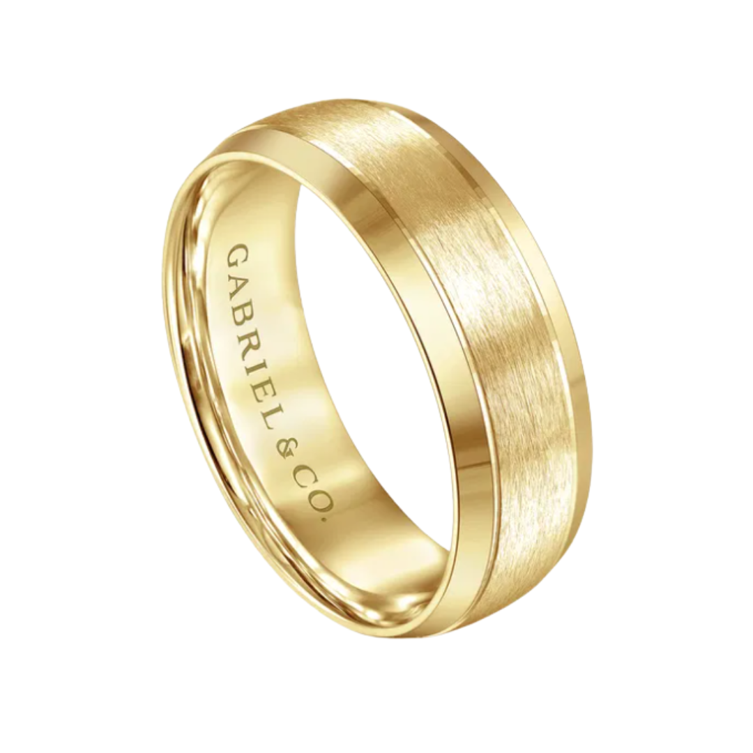 Robert 7mm Beveled Edge Men's Wedding Band in Horizontal Brush Finish