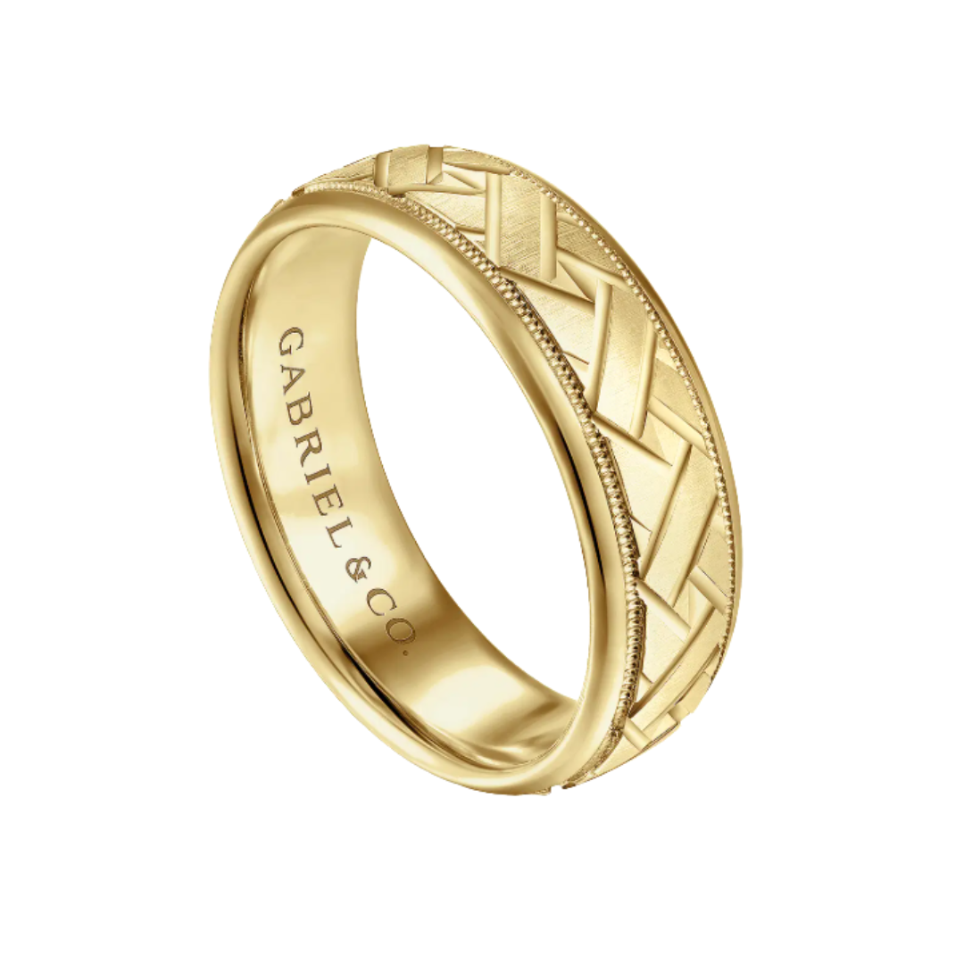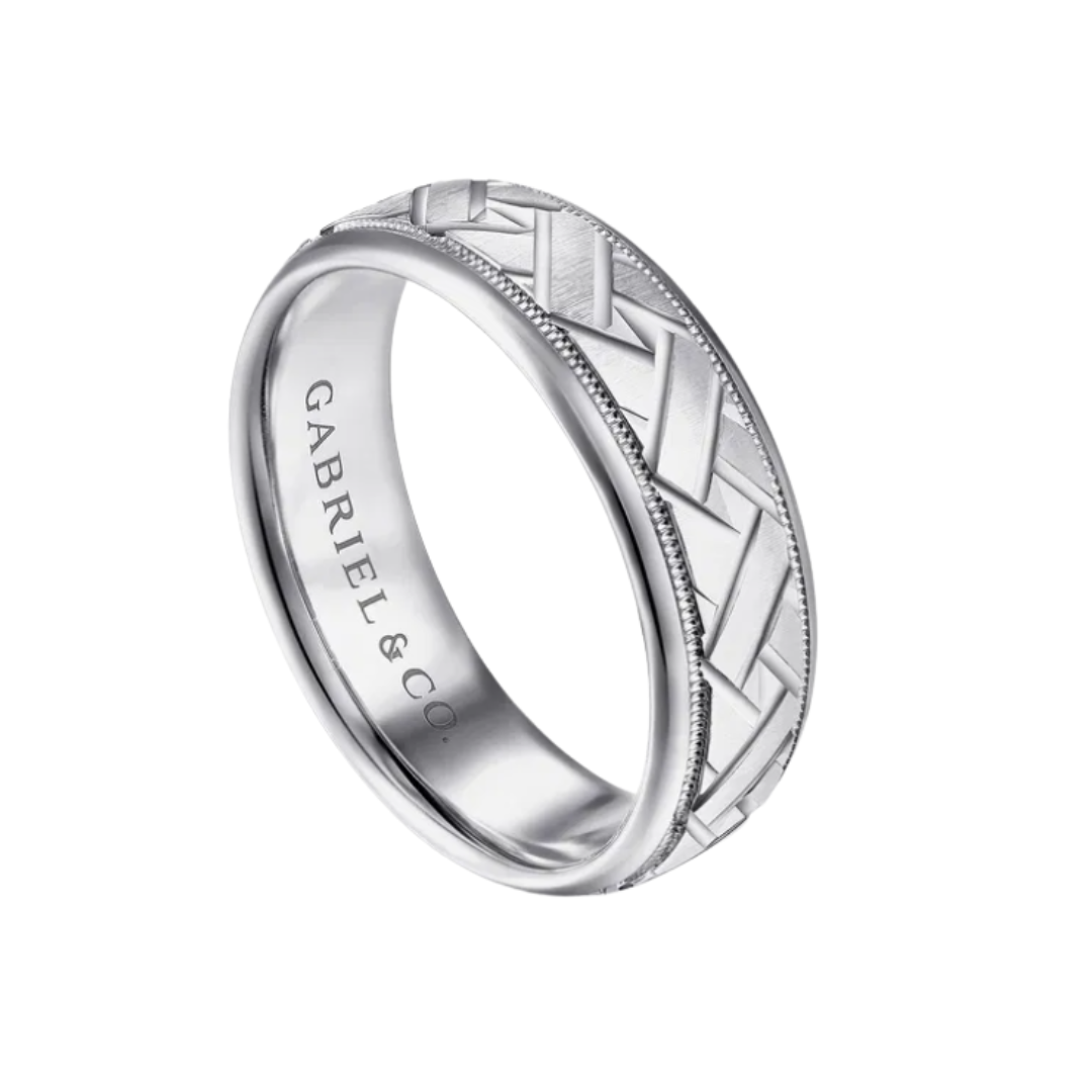 Oliver 7mm Engraved Woven Men's Wedding Band in Satin Finish