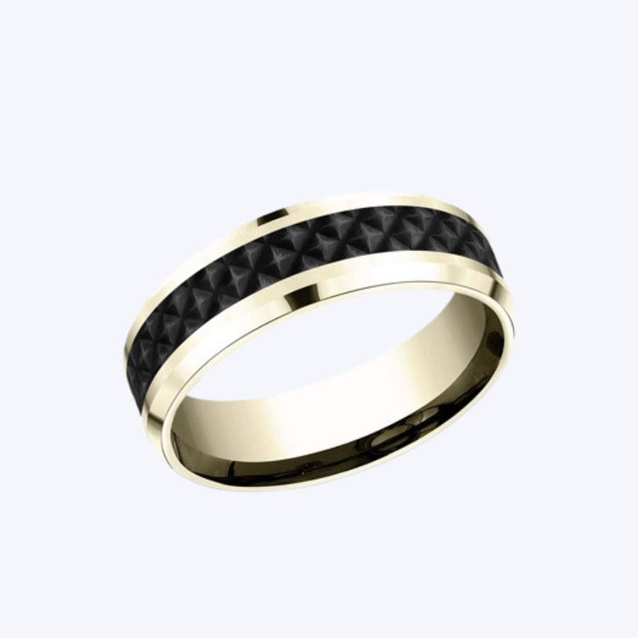 Benjamin 8mm Two Tone Beveled Edge Men's Wedding Band in Satin Finish