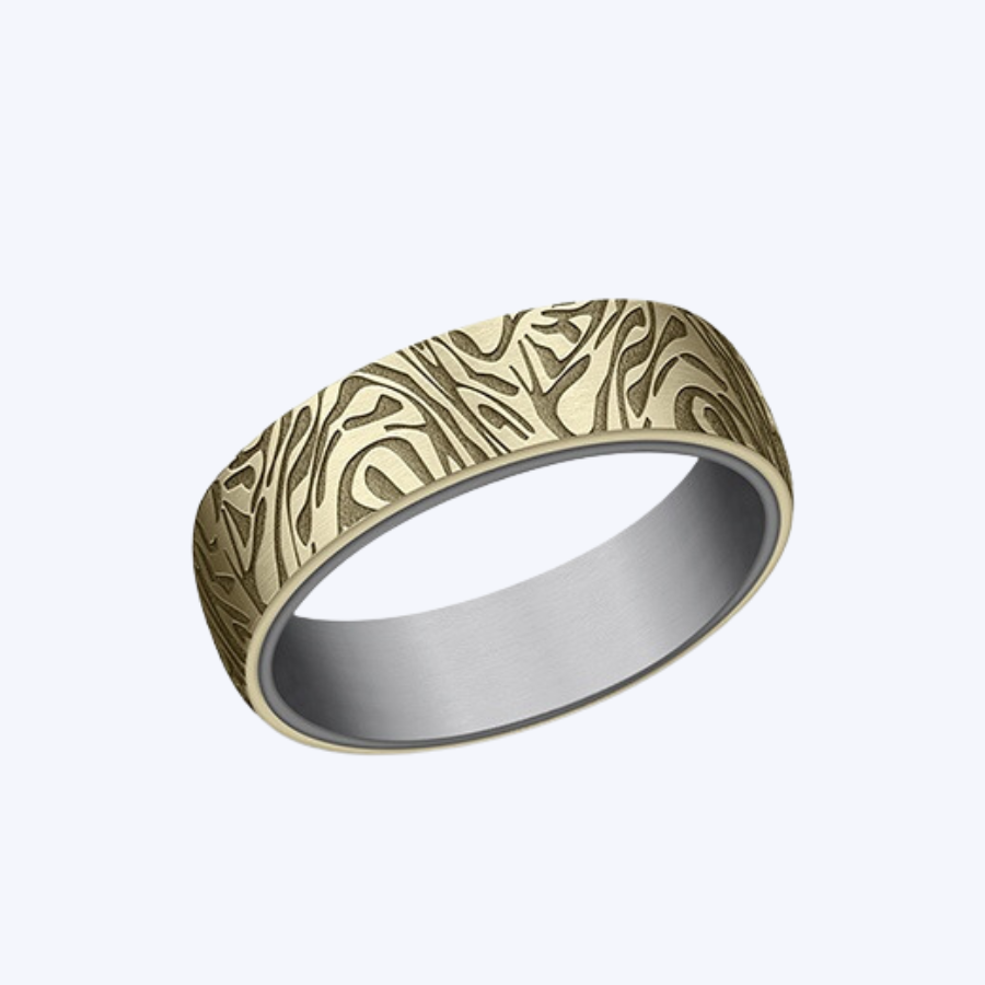 Archie 6mm Two Tone Hammered Men's Wedding Band with Milgrain Edge