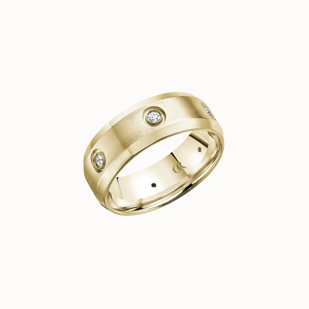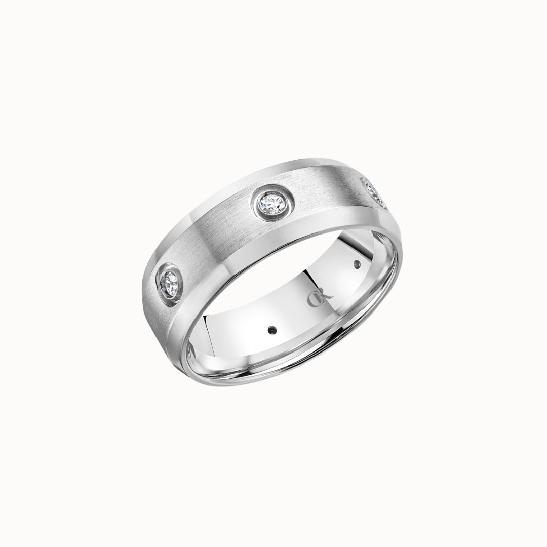 Crown 8mm Sandpaper with Bezel Diamond Accents and Polished Bevels Band