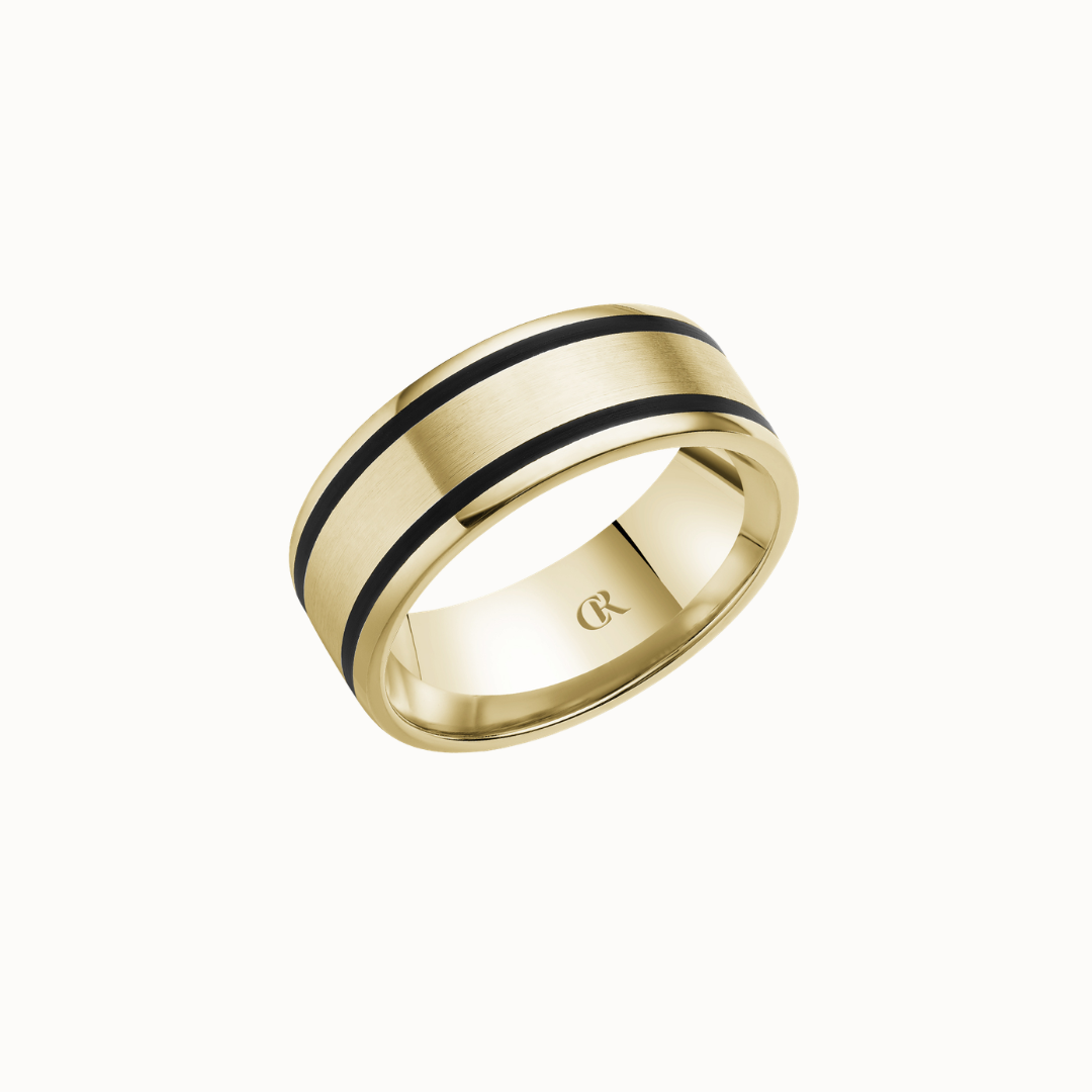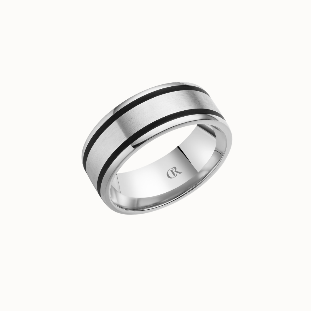 Crown 8mm Sandpaper Finish with Black Enamel Inlays and High Polish Sides Band