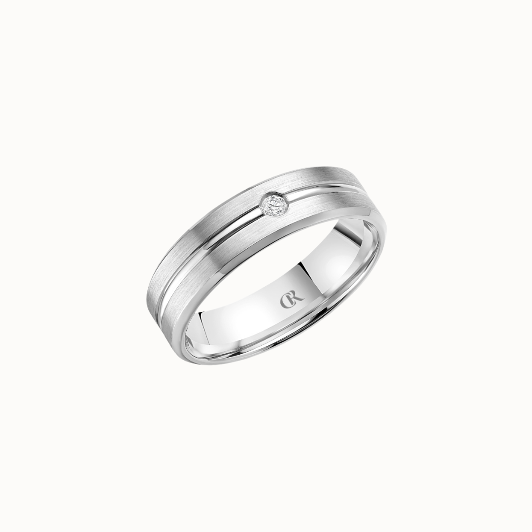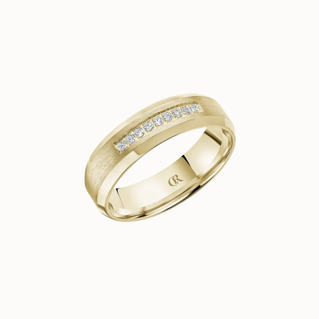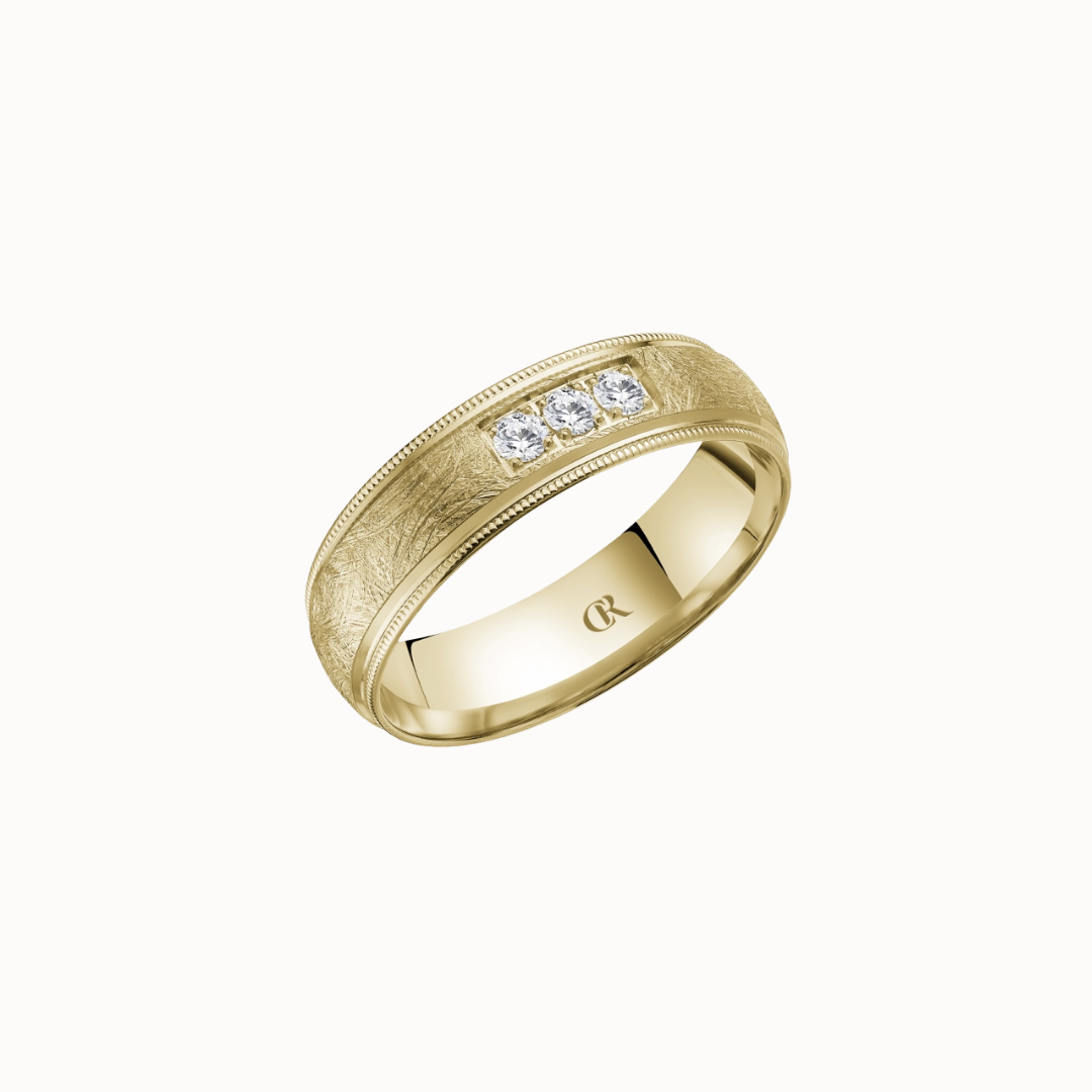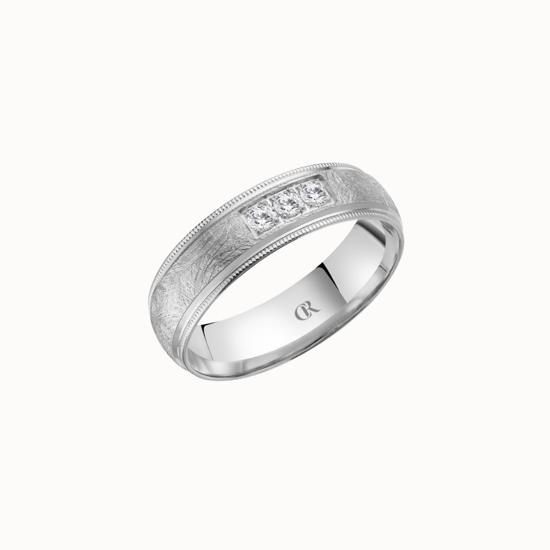 Crown 6mm Sandpaper Finish with Center Groove and Diamond Accent Band