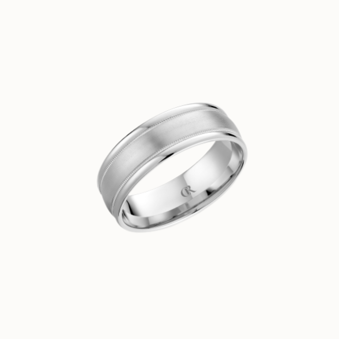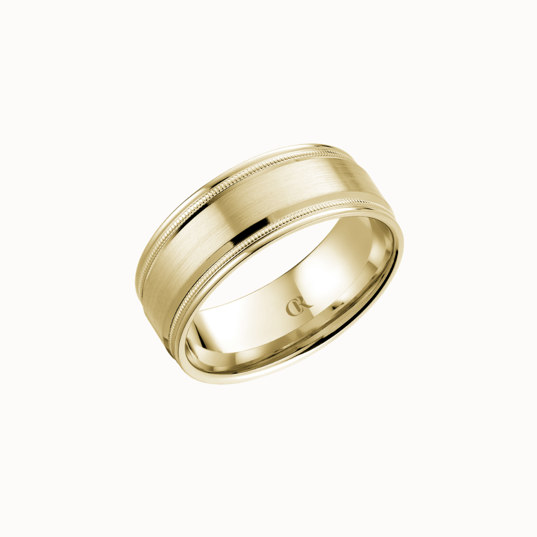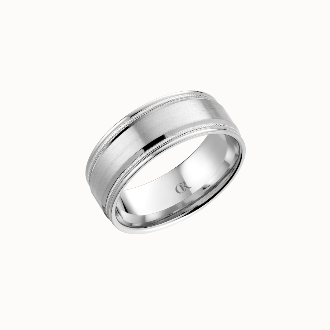 Crown 8mm Sandpaper Finish with Milgrain and High Polish Beveled Edges Band