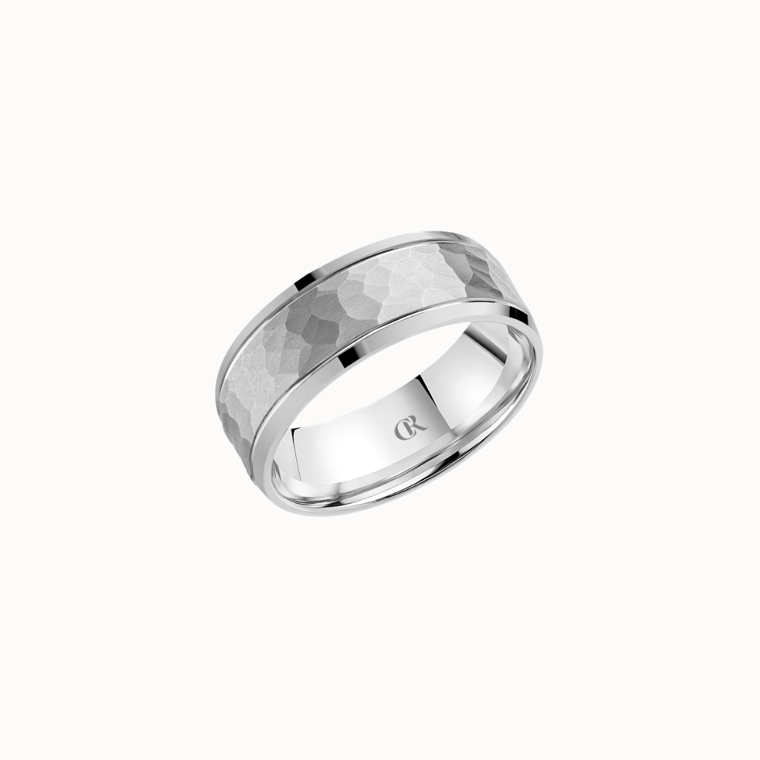 Crown 8mm Frosted Hammered with Polished Edges Band