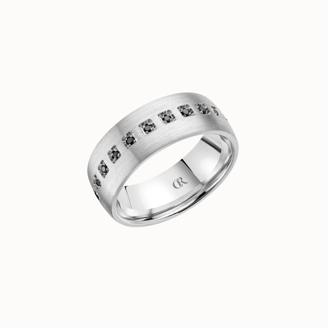 Crown 8mm Sandpaper Finish with Black Diamond Accents Band