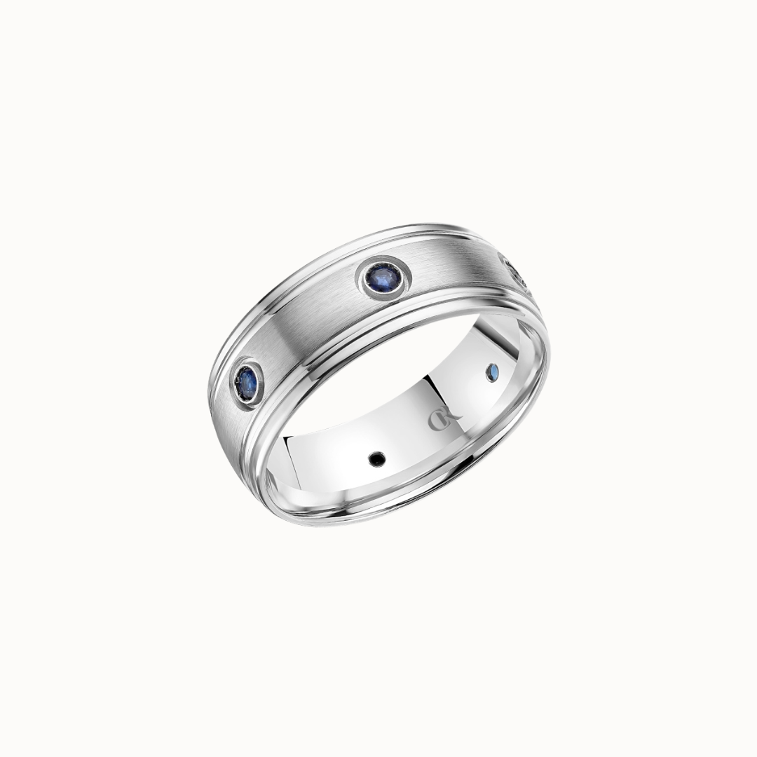 Crown 8mm Sandpaper Finish with Bezel-Set Sapphire Accents and High Polish Edges Band