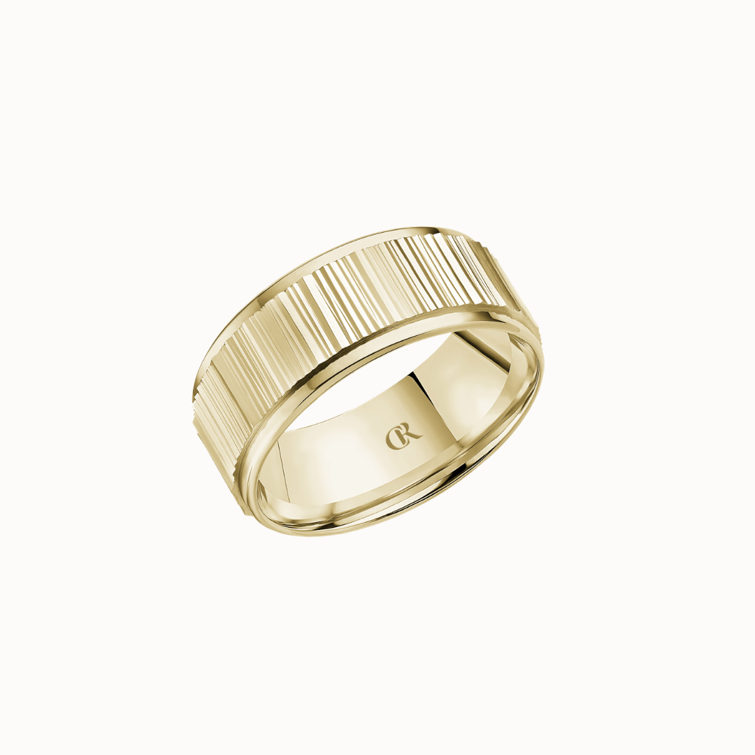 Crown 8mm Sandpaper Top with Diamond Channel, High Polish Bevels, and Milgrain Edges Band