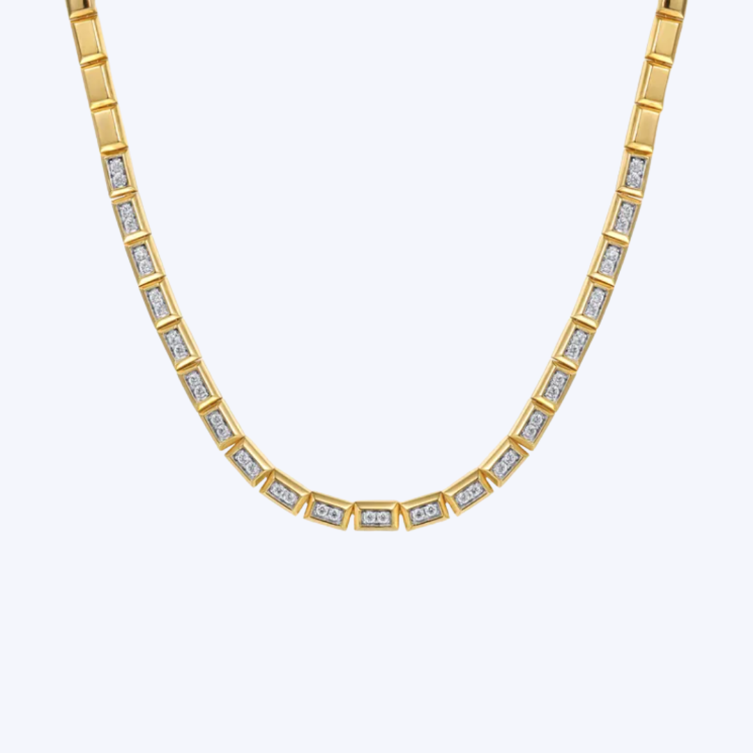 Diamond Elongated Flat Top Pyramid Tennis Necklace