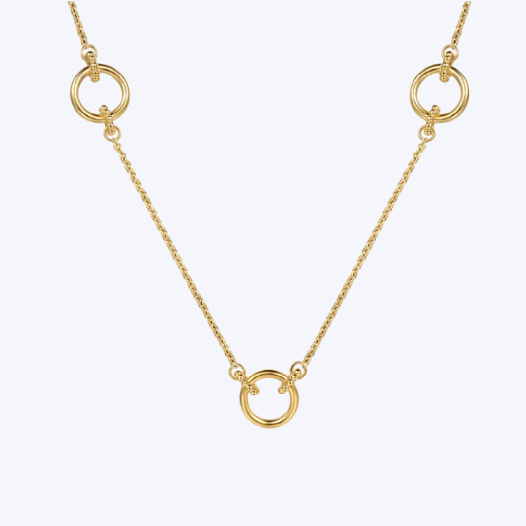 Yellow Plain Gold Bujukan Link Chain Station Necklace