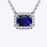 Diamond Cushion Halo and Oval Sapphire Necklace