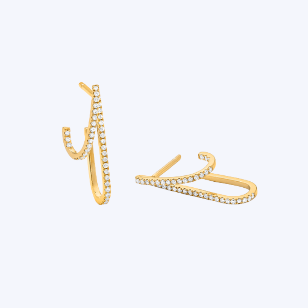 Pave Double Curve Drop Earrings