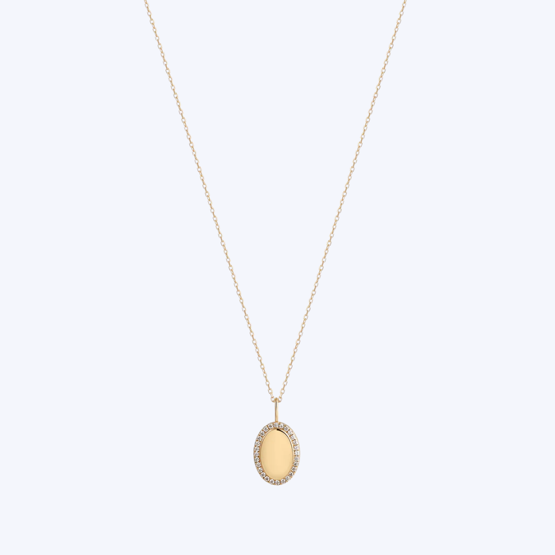 Diamond Oval Engravable Pendant Necklace