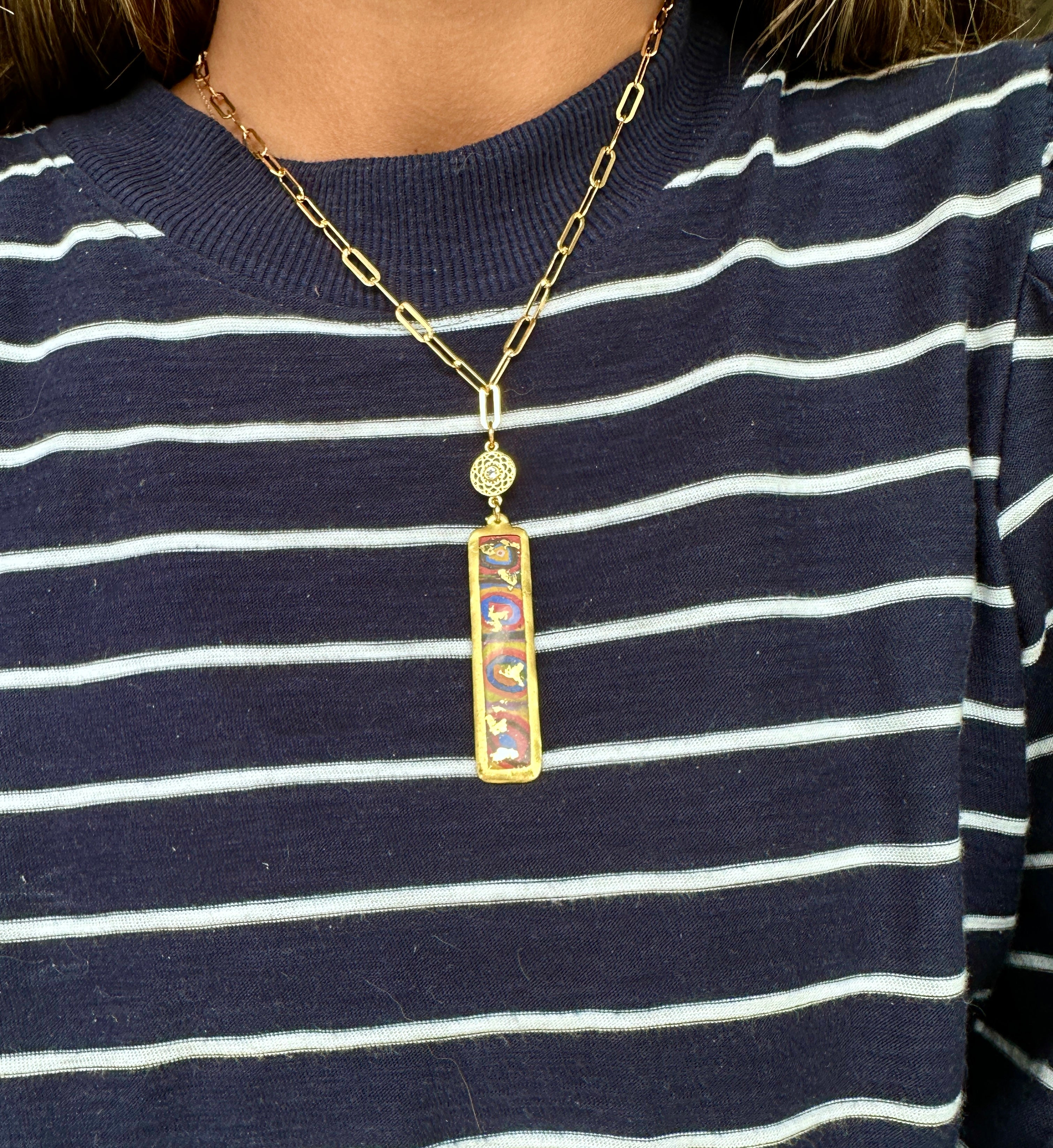 Burnished with glowing 22K gold leaf, this piece is crowned with a white topaz in a filigree setting for added sparkle.