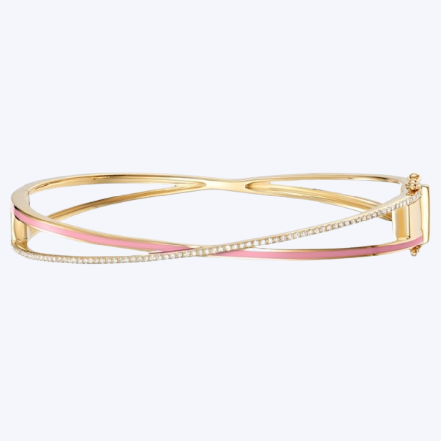 Criss-Cross Diamond & Pink Enamel Bracelet