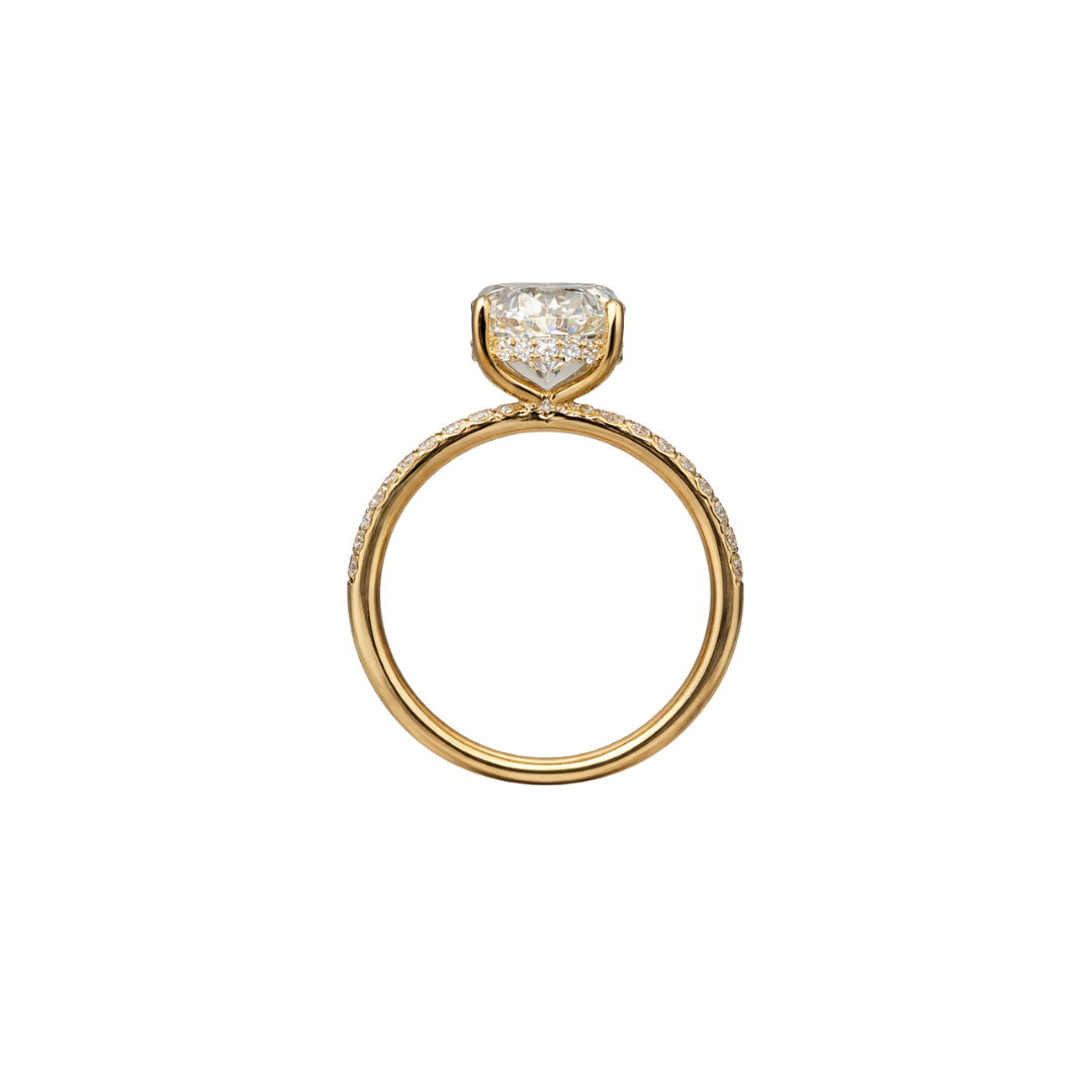 3.50ctw Oval Diamond with Hidden Halo and Pave Band Engagement Ring