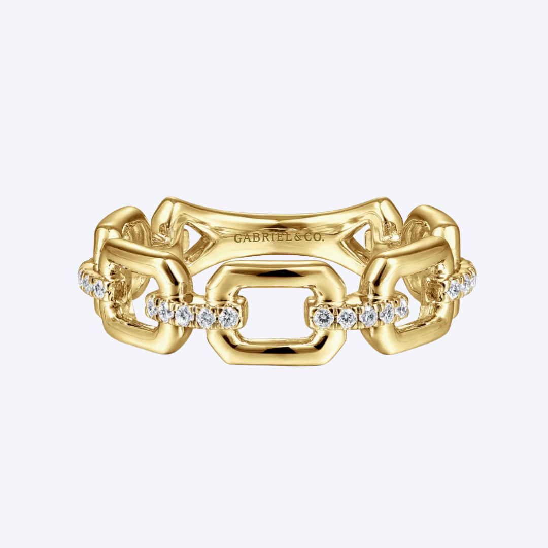 Chain Link Stackable Ring Band with Diamond Connectors