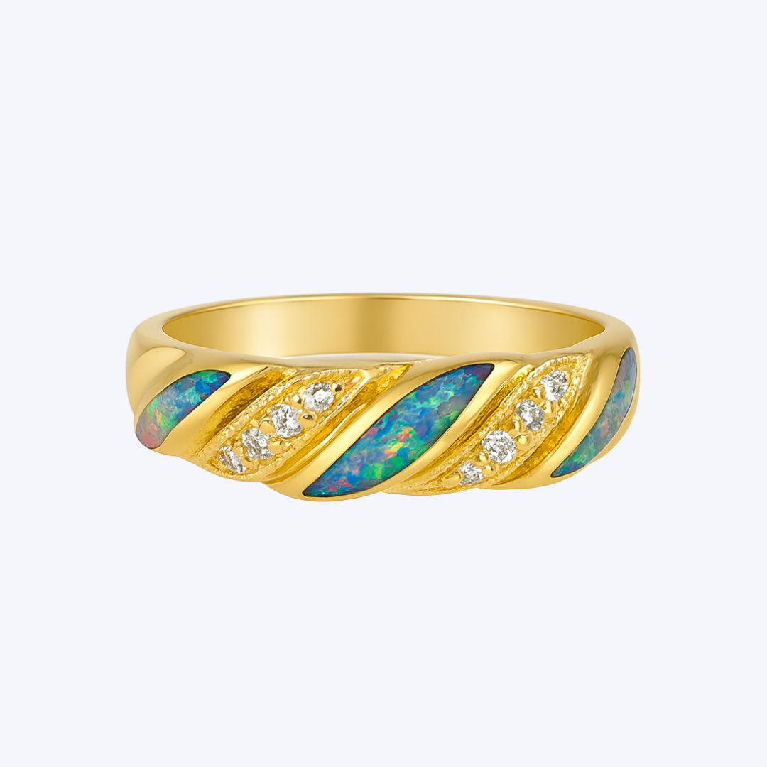Opal and Diamond Wave Inlay Band